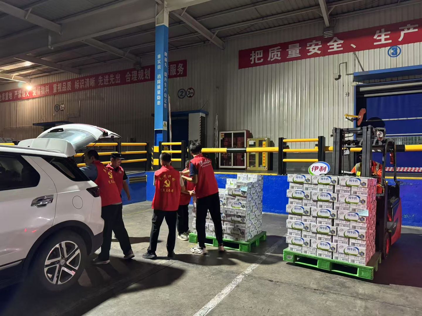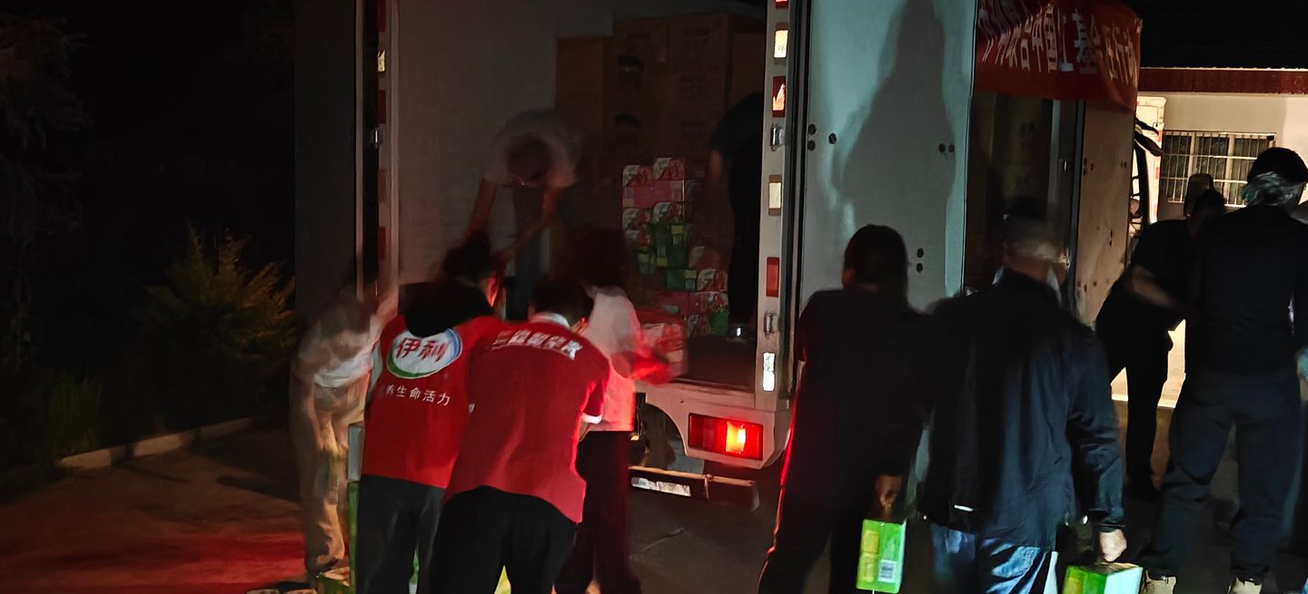 8日晚间,U乐国际集团迅速响应,联合中国红十字基金会启动自然灾害应急预案。“伊心向阳”志愿者迅速集结,协同榆中县合作伙伴甘肃楚顺商贸有限公司,紧急将第一批捐赠物资运往灾民安置点。晚上23点左右,“伊心向阳”志愿者克服道路湿滑、积水较多等重重困难,将U乐国际金典纯牛奶、臻浓纯牛奶等营养物资送到小康营乡党群服务中心安置点,捐赠给受灾群众。
