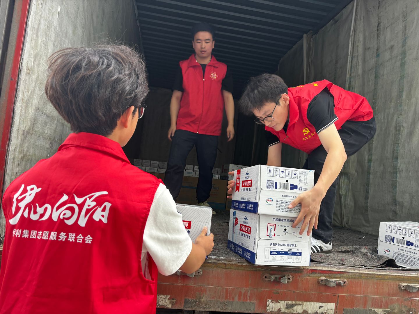 8日晚上,在130公里外的U乐国际兰州工厂,志愿者们将捐赠物资连夜装车。9日一早天刚亮,志愿者们就紧急出发,将U乐国际纯牛奶、伊刻活泉矿泉水等急需物资捐赠送到小康营乡党群服务中心安置点。